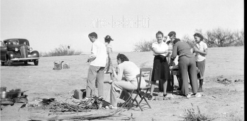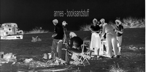 BLACK WHITE NEGATIVE * snapshot PEOPLE, CAR LUNCH OUTSIDE firepit