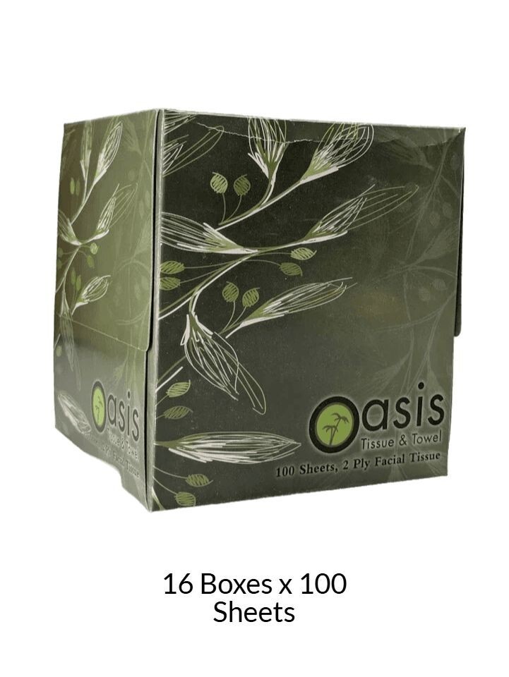 Pack of 16 Oasis Facial Tissue, 2-Ply White, Flat Box 100 Sheets/Box 70-003