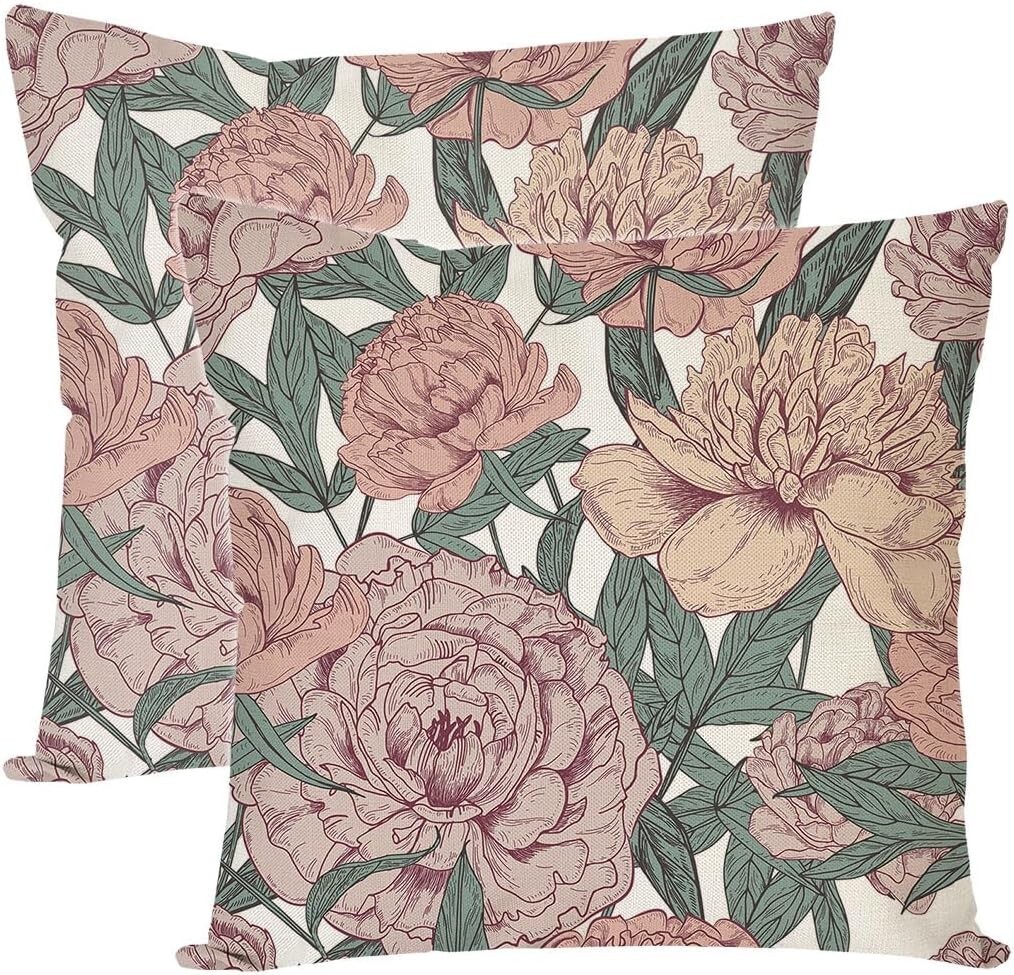 Set of 2 Pandicorn Vintage Floral Throw Pillow Covers Case 18x18 in Peony Flower