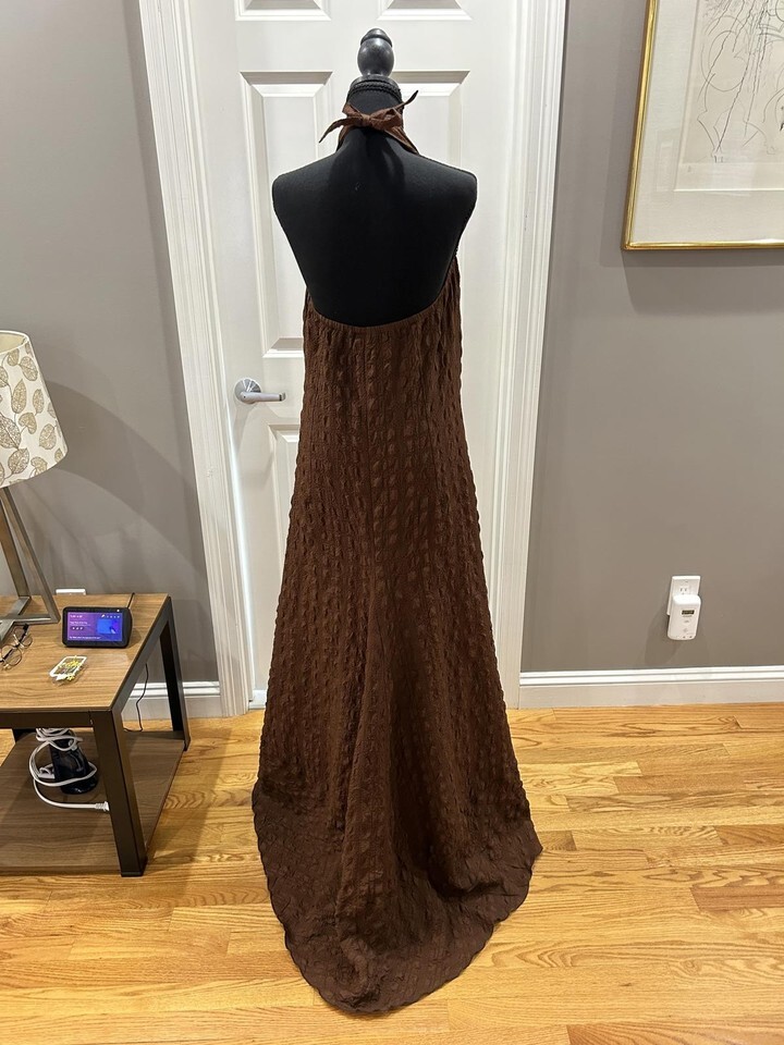 COURTNEY WASHINGTON Brown Textured Halter Neck Maxi Dress