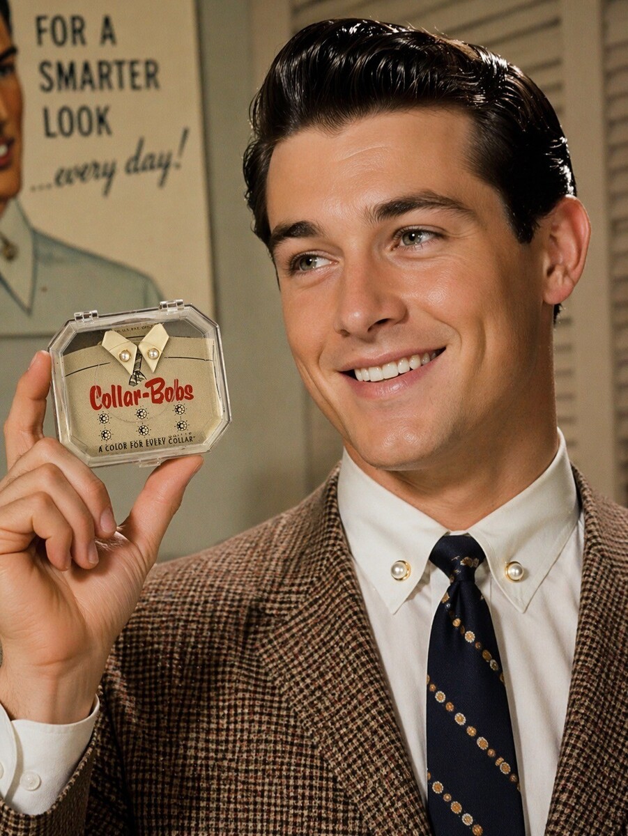 These were designed to attach to shirt collars as decorative accents, a popular mid century accessory. The original packaging reads A Color For Every Collar and includes usage instructions on the back.