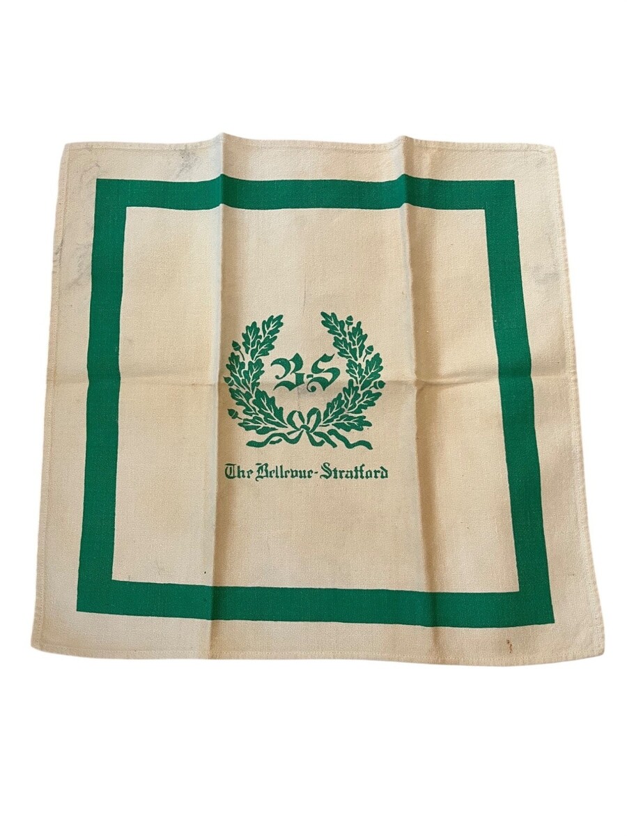 Vintage Bellevue Stratford Linen Napkin Philadelphia Hotel Souvenir 15.5x16