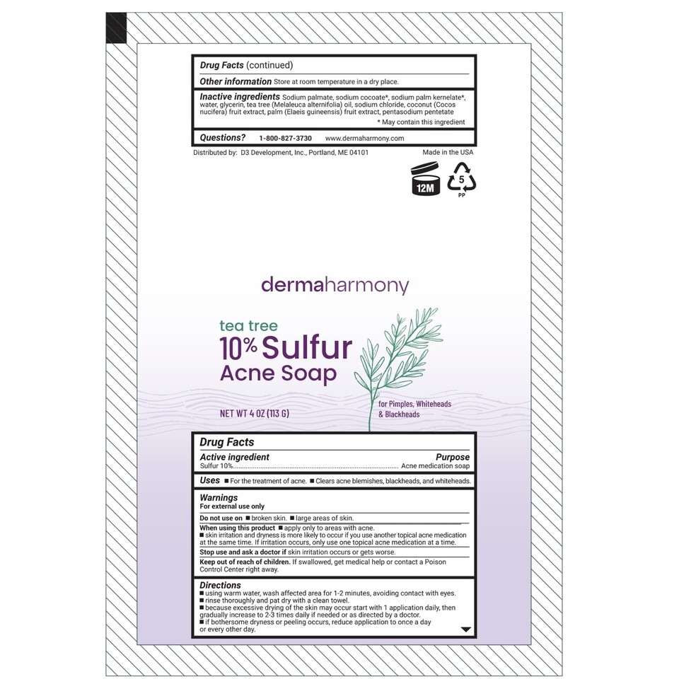 10% Sulfur Soap with Tea Tree Oil - DermaHarmony 4oz - One Bar (Wrapper)