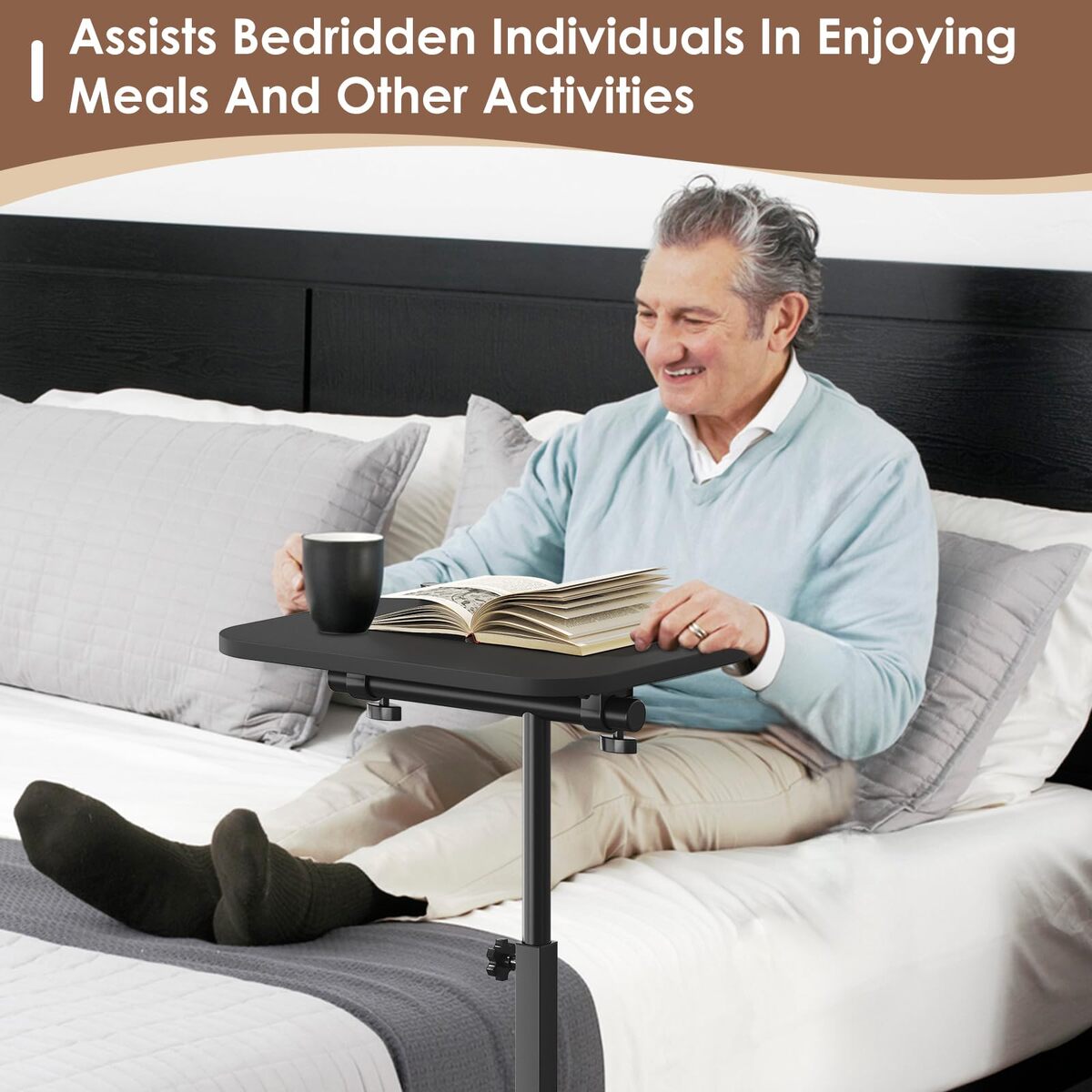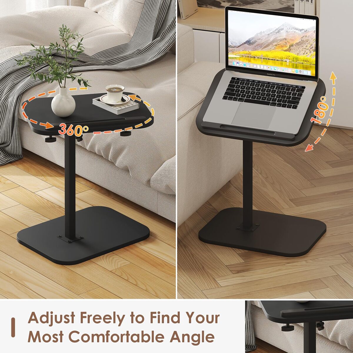 Adjustable Height:Enjoy customizable convenience with a height range from 17.7" to 31.5". Whether you're lounging on the sofa, sitting in bed, or standing, you can easily adjust the table's height to suit your needs?no bending or straining required.,360 Rotating and Tiltable Tabletop:The versatile tabletop rotates a full 360 and tilts to multiple angles, offering maximum flexibility for a variety of activities like reading, working, or enjoying a meal. Easily adapt the table to your ideal position for ultimate comfort and convenience.,Space-Saving C-Shaped Design:This compact side table is thoughtfully designed with a sleek C-shape, perfect for maximizing space in small living areas. Its 15.7? x 11.8? tabletop fits seamlessly into tight spots and slides easily under sofas or beds, making it an ideal solution for apartments, dorms, or any room with limited space.,Durable and Safe Construction:Made with a sturdy steel frame and premium MDF, this table is built to last while maintaining a modern, minimalist aesthetic. For added safety, the rounded corners of the tabletop provide a worry-free experience for homes with kids or pets.,Easy Assembly and Multi-Use Functionality:Assembling this side table is a breeze?no complicated tools required. Its versatile design makes it a perfect fit for various settings, including the living room, bedroom, office, or study. Use it as a bedside table, workstation, or sofa companion, and enjoy a stylish and practical addition to your home.