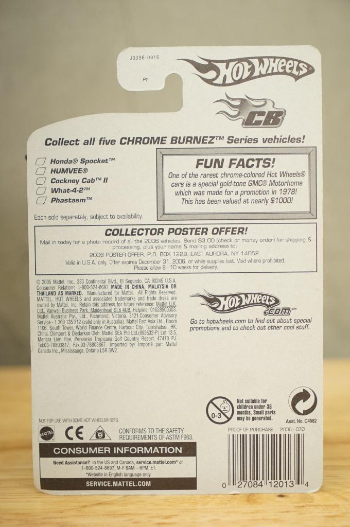 NOS 2005 Hot Wheels 070 Phastasm Chrome Burnez Rack Pack Metal Toy Car Mattel