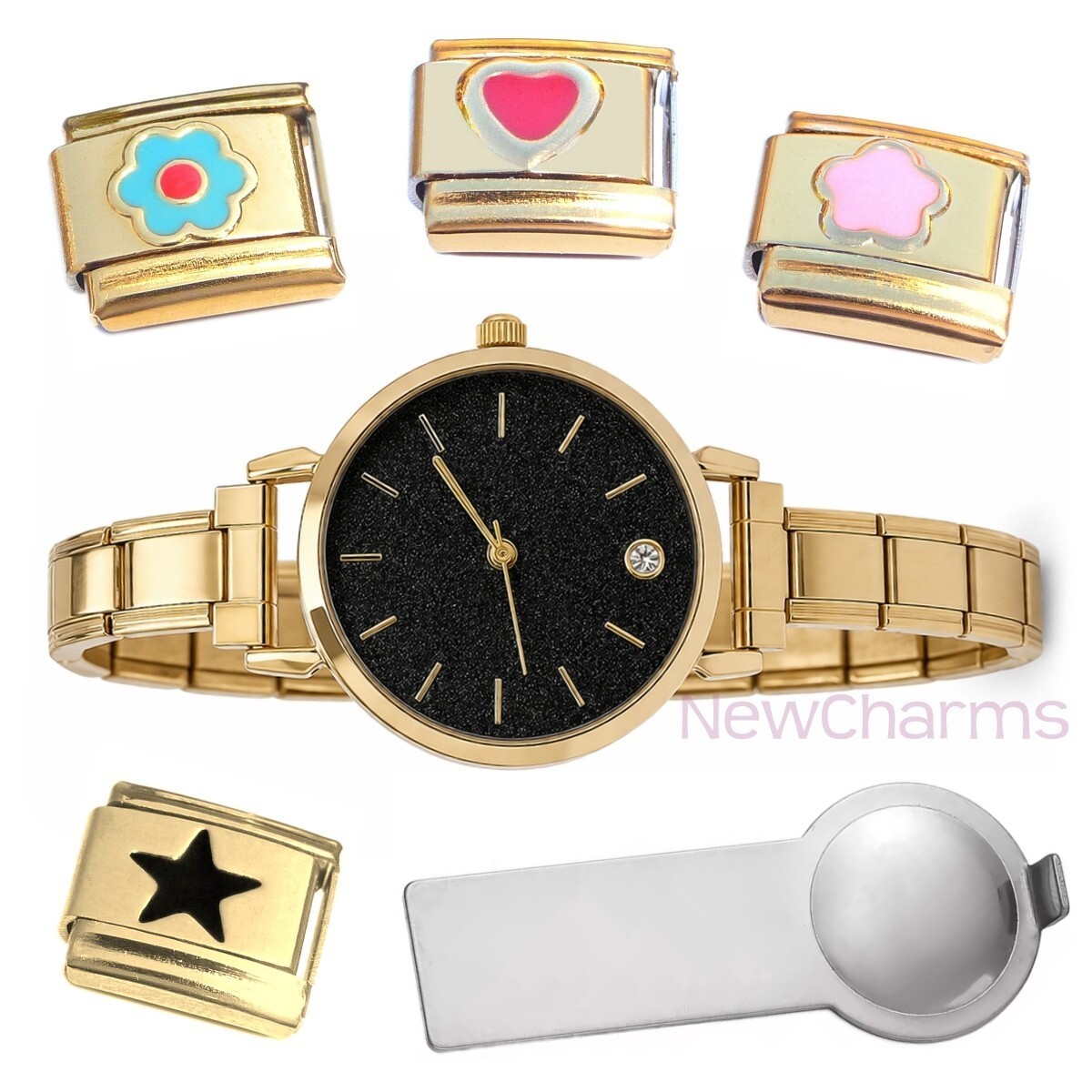 Black Textured Italian Charm Watch Gold and 50 similar items