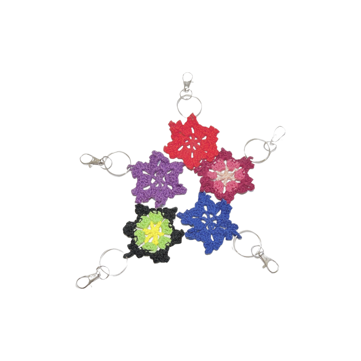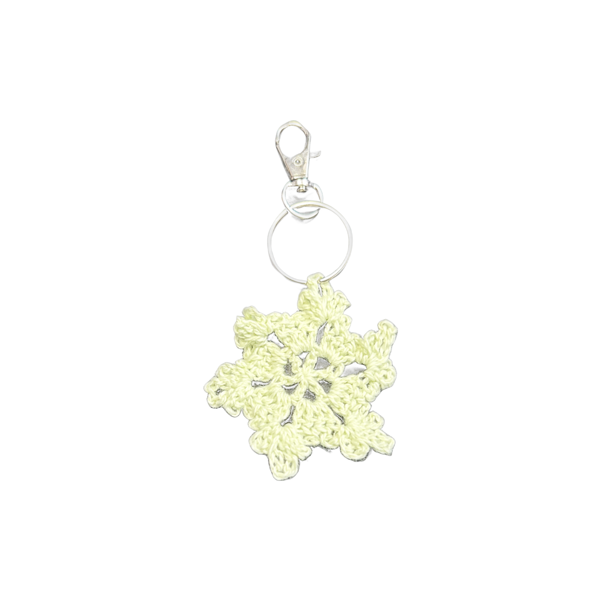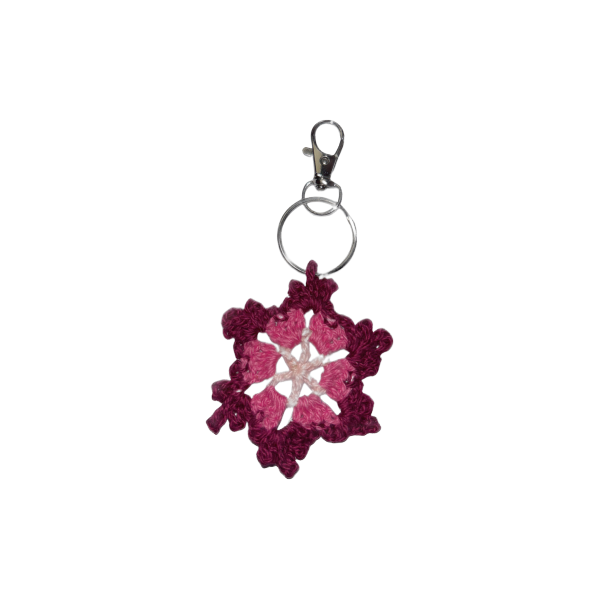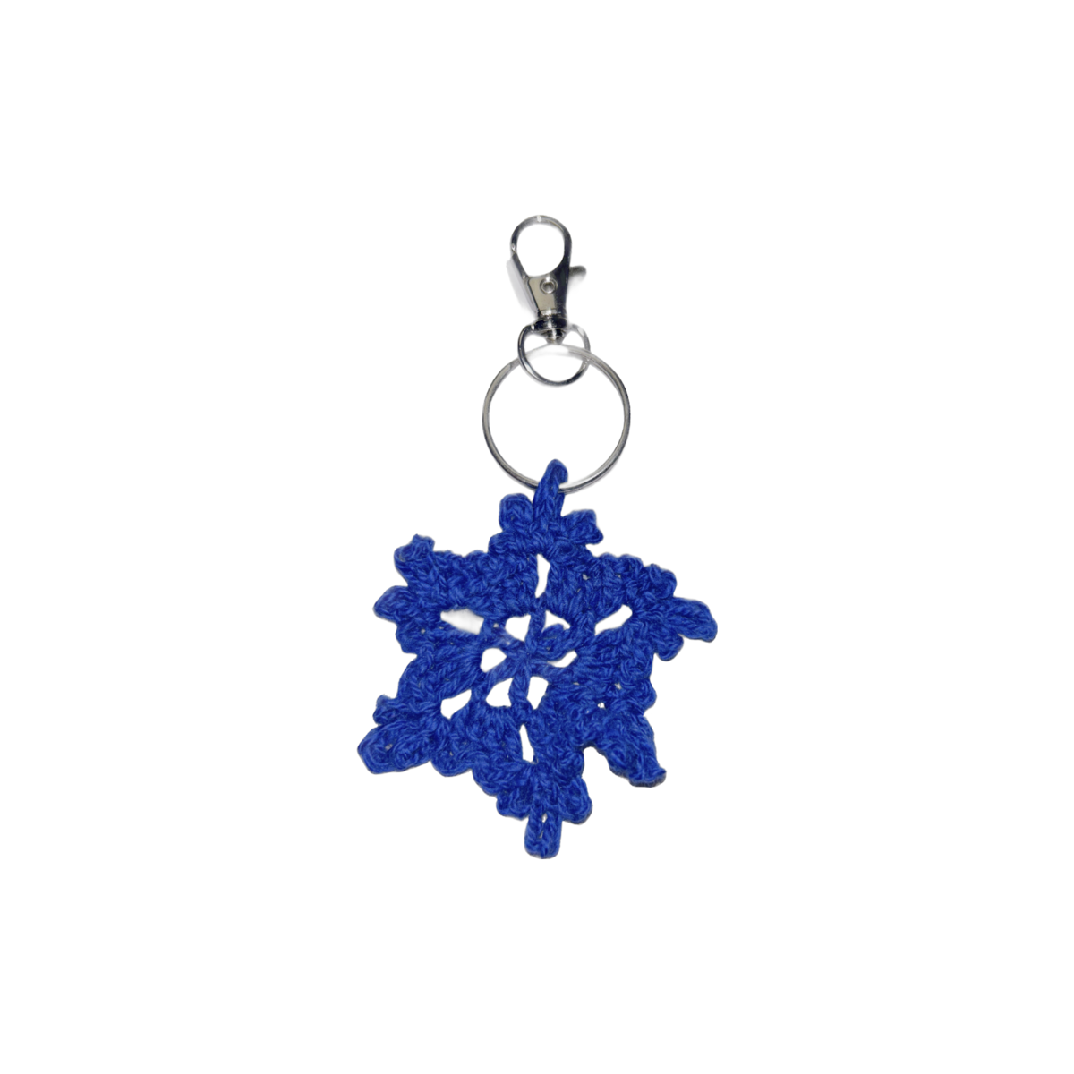 This snowflake keychain features a stylish crochet design, combining charm and functionality in one compact accessory. Perfect for adding a touch of elegance to your keys or bag.