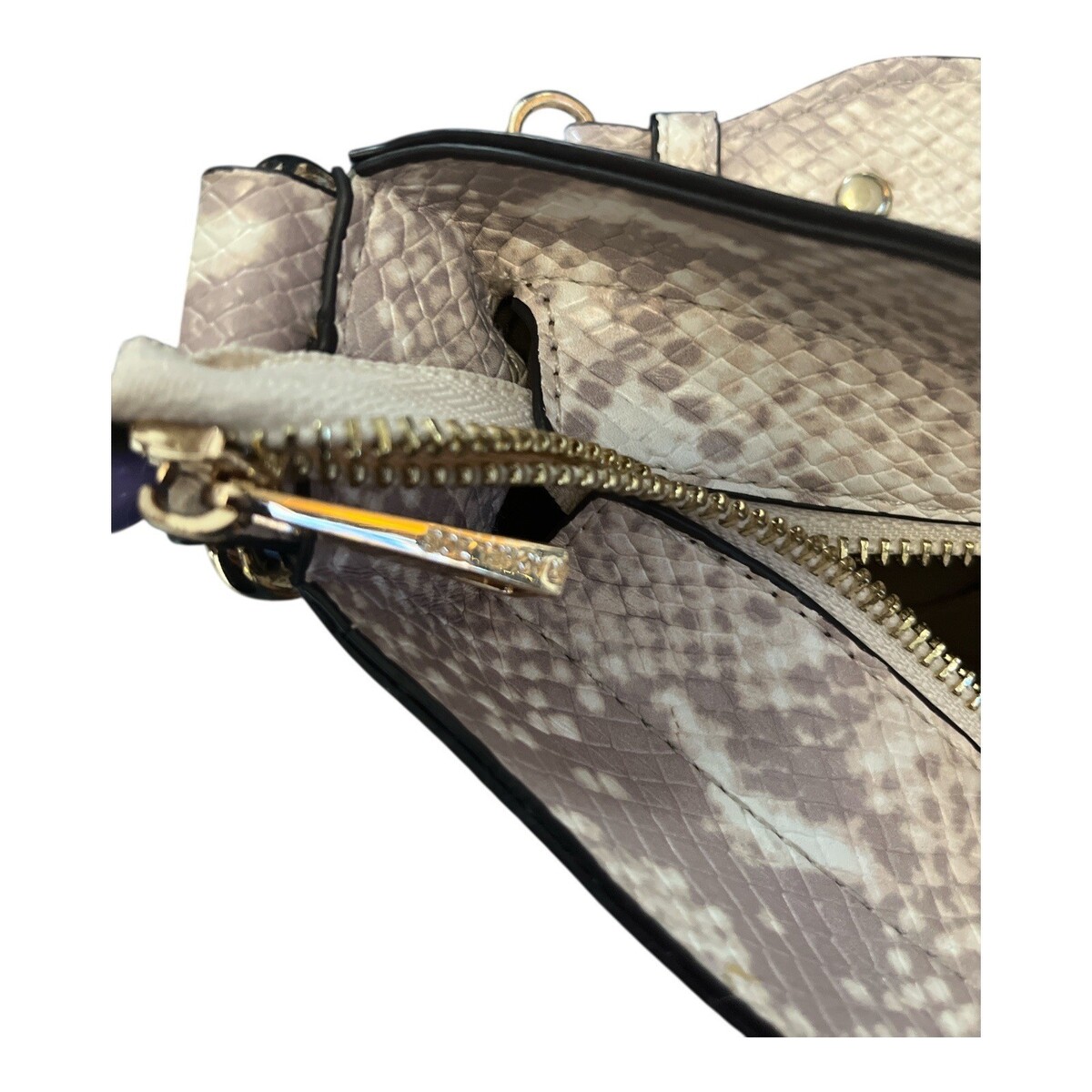 Rachel Zoe Snakeskin Embossed Crossbody Bag Beige Gold Tone Hardware