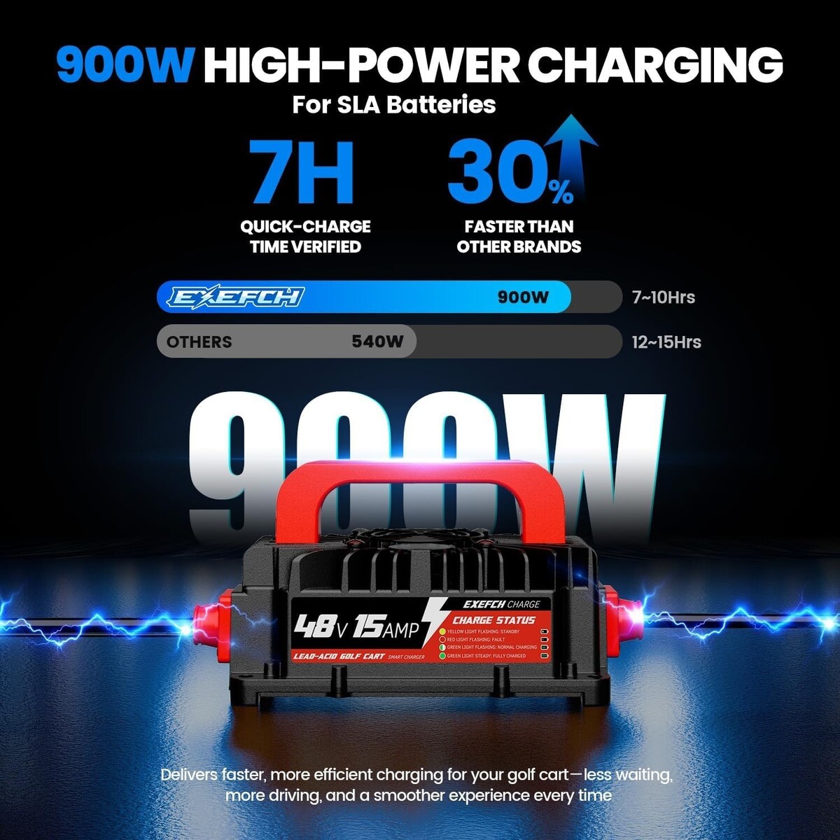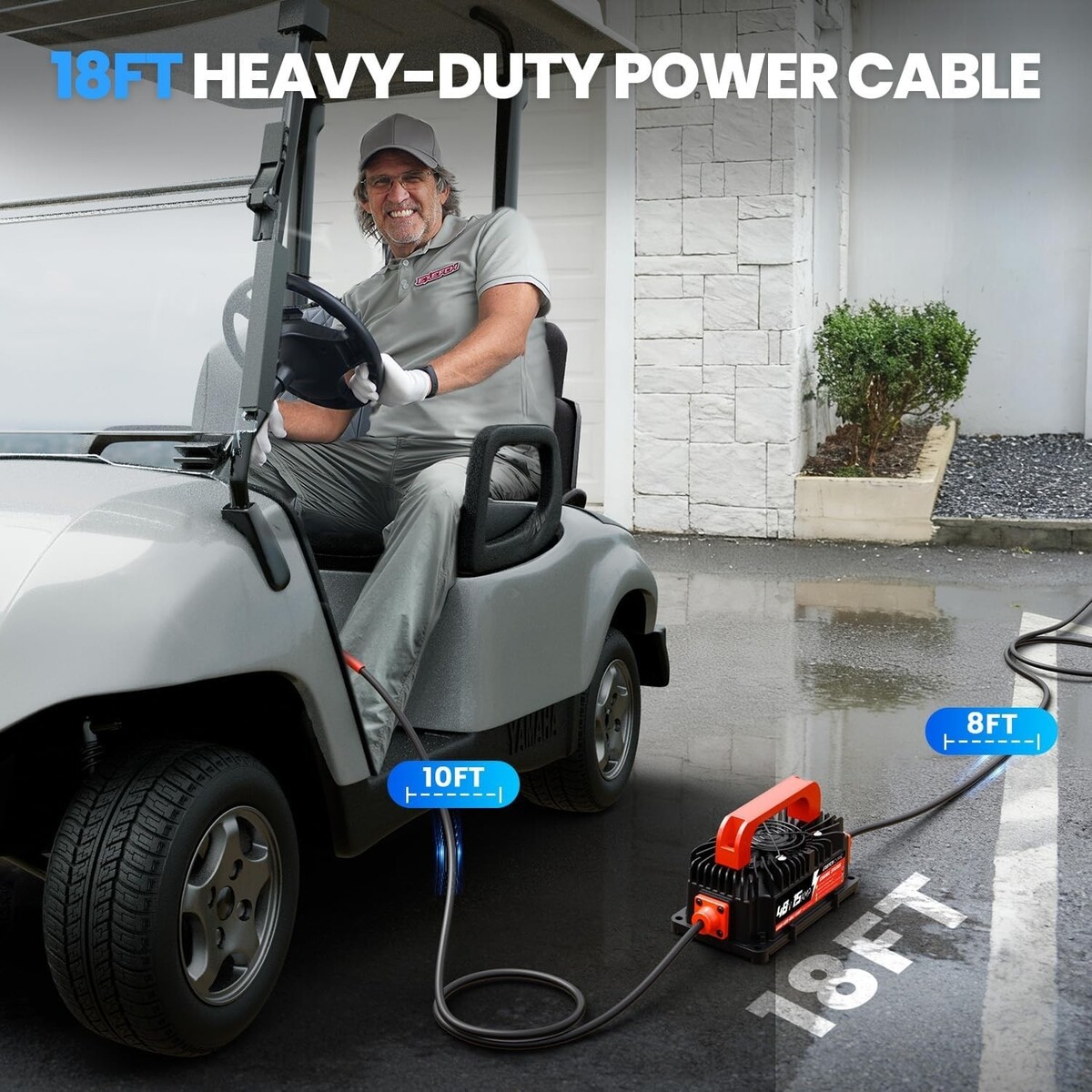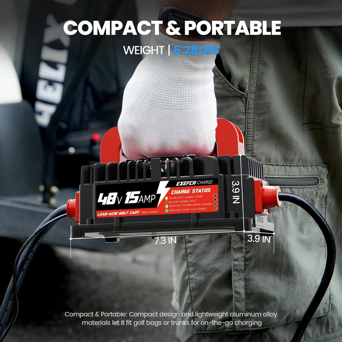 Lightweight and portable with user-friendly design: Compact and lightweight, 48v golf cart battery charger weighs as little as 6.28pounds, equipped with a portable handle and a 18-foot power cord, it is easy to operate, carry and use