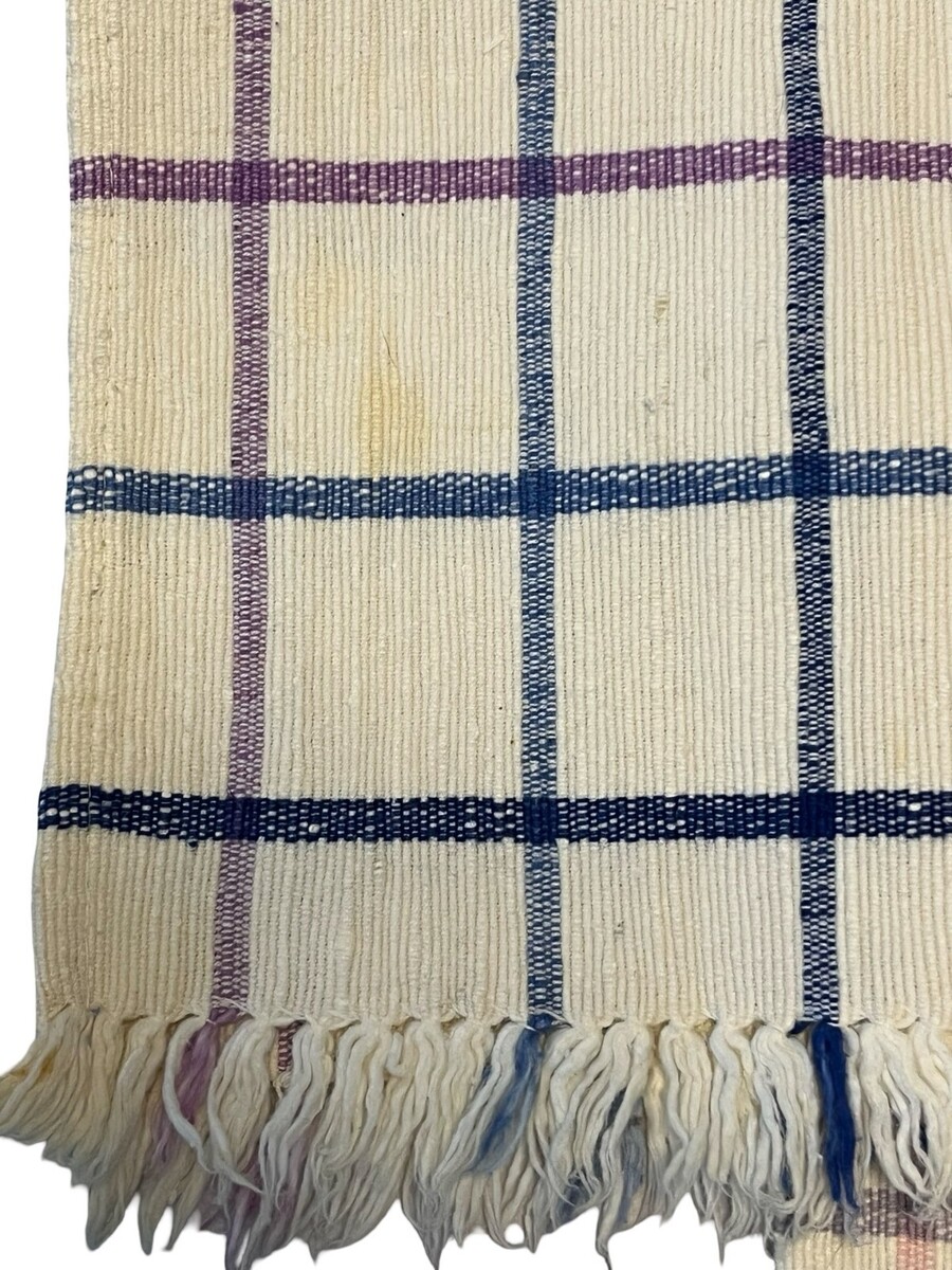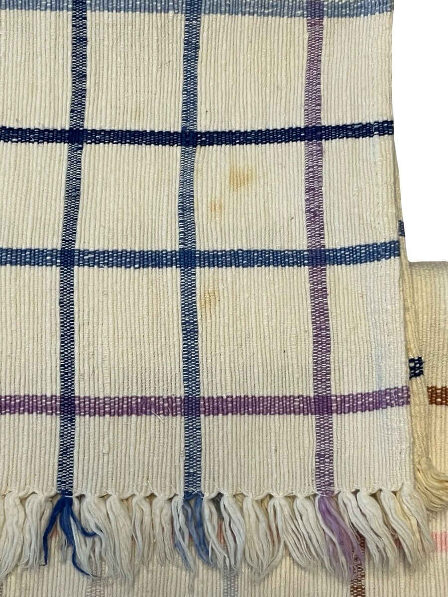 Vintage condition with visible staining and wear consistent with age and use. Fringe shows some wear. Still functional and great for decorative or casual use.