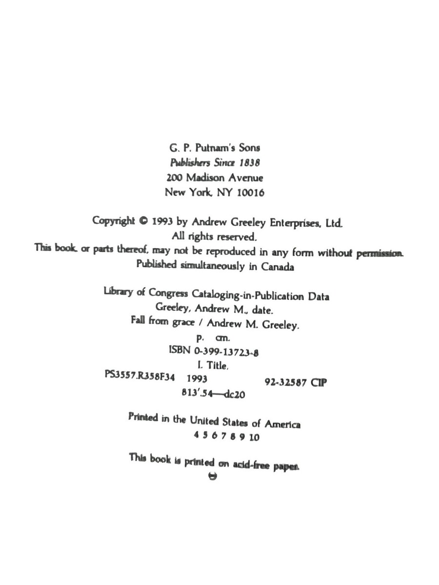 Andrew M Greeley Book Lot Fall From Grace An and similar items