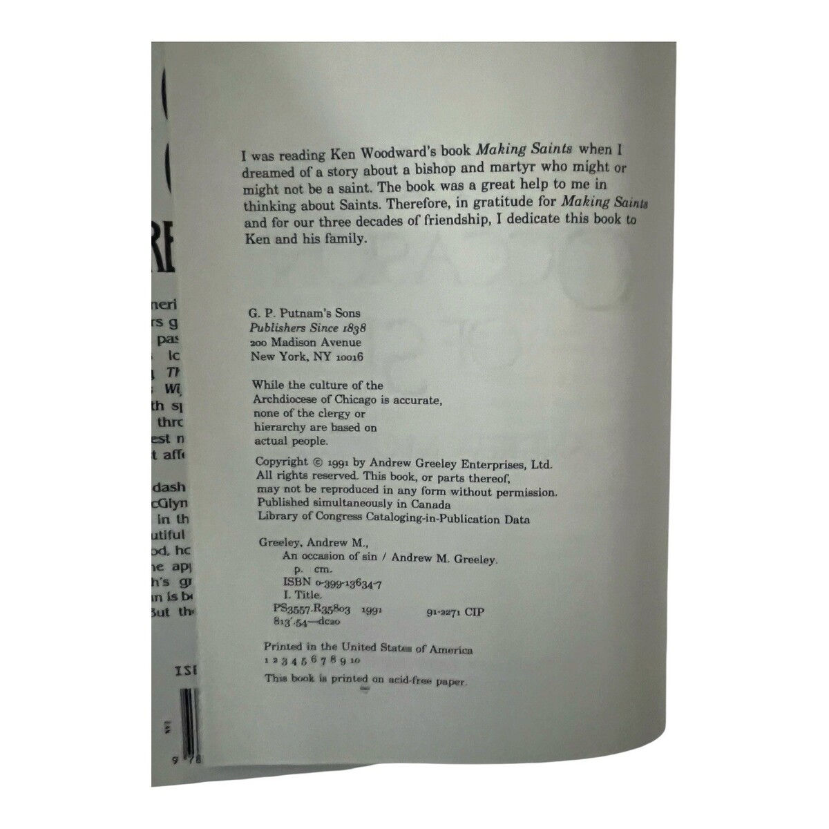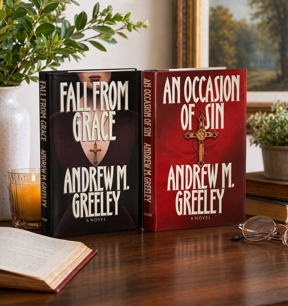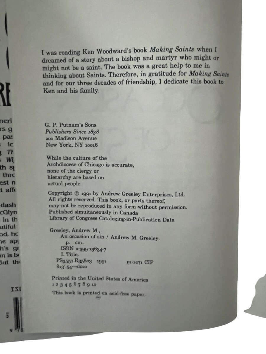 Set of two hardcover novels by Andrew M. Greeley: Fall From Grace and An Occasion of Sin. These mid-1990s era books feature dramatic cover art and explore themes of faith, morality, and human relationships. A great addition for collectors of religious fiction, vintage books, or fans of Greeley?s work.