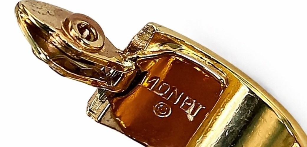 Signed Monet on the interior. Easy, comfortable clip-on style for non-pierced ears and a great everyday or dress option.