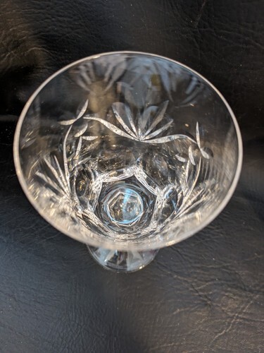 This Waterford Ashling Water Goblet is a beautiful piece of Irish crystal, standing at 6 7/8 inches tall and holding up to 10 oz of liquid. The goblet features a cut glass production style, hand blown glass production technique, and a clear color that allows the intricate pattern to shine through. The goblet is a vintage original piece, with its brand, Waterford, and origin, waterford, hailing from Ireland. It comes as a set that includes a glass, and is perfect for adding a touch of elegance to any dining occasion. Whether for personal use or as a gift for someone special, this Waterford Ashling Water Goblet is a timeless addition to any collection.