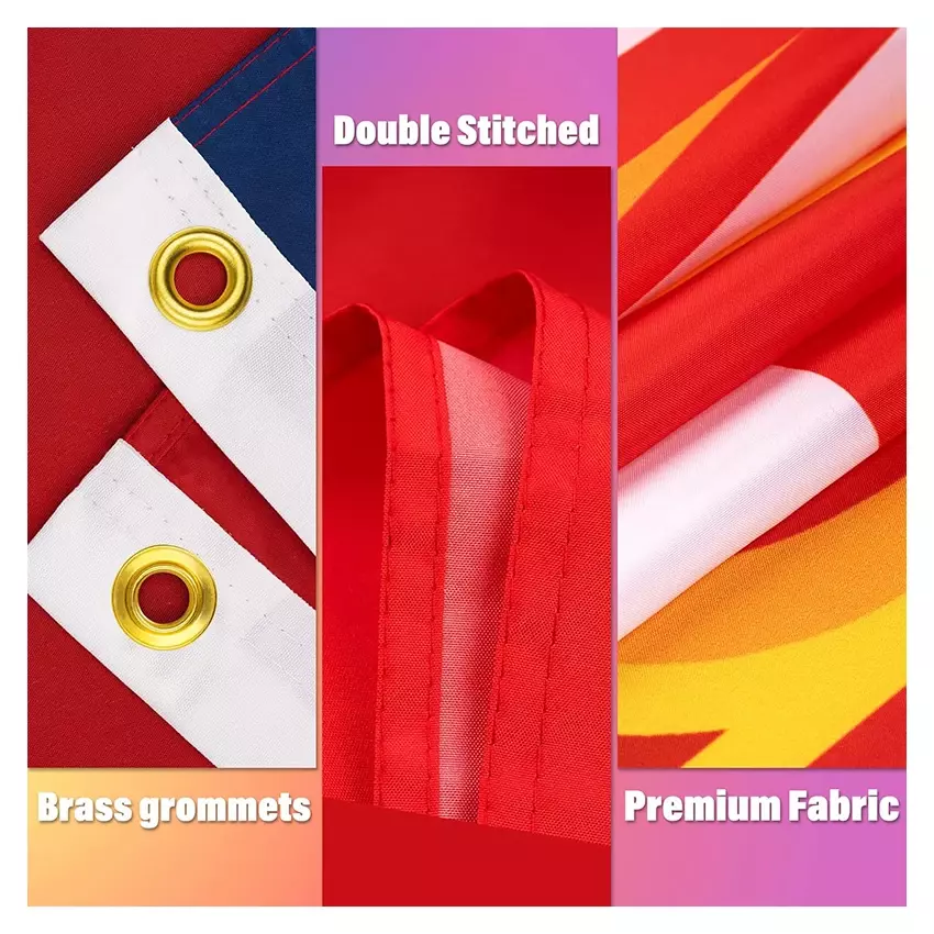 TOP QUALITY - Made of 100% Polyester, the flag is incredibly lightweight and durable. It is wrinkle-resistant and quick-drying, so even on rainy or harsh cold days, you won't have to compromise on quality. The flag is stain-resistant, retains its original shape, and can be easily cleaned at home by hand.