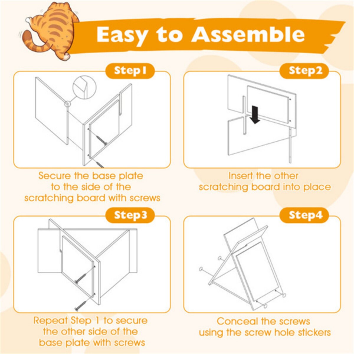 • Simple Seamless Assembly: Featuring slot-in system, the triangle scratcher can be effortlessly installed without complicated steps. Moreover, included adhesive screw stickers conceal all joints, resulting in a polished look for your cat's new favorite spot.