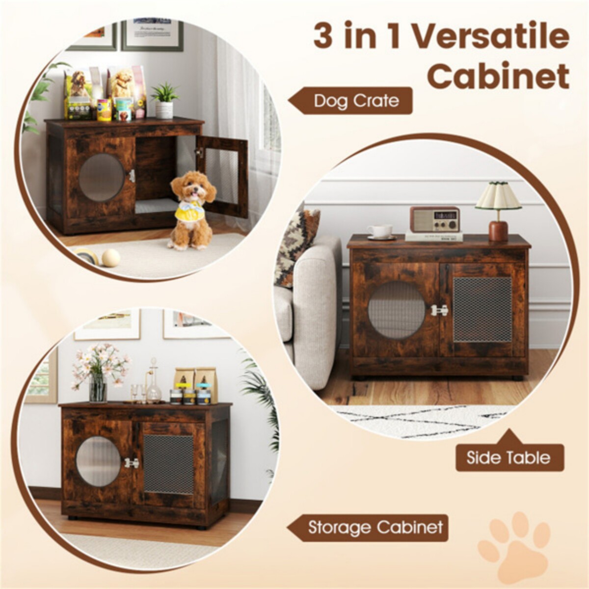 • Dual-purpose Dog Furniture: The indoor dog house doubles as a versatile piece of furniture that can be used as an end table or an entryway table. It includes a spacious tabletop for convenient placement of dog accessories and everyday essentials.