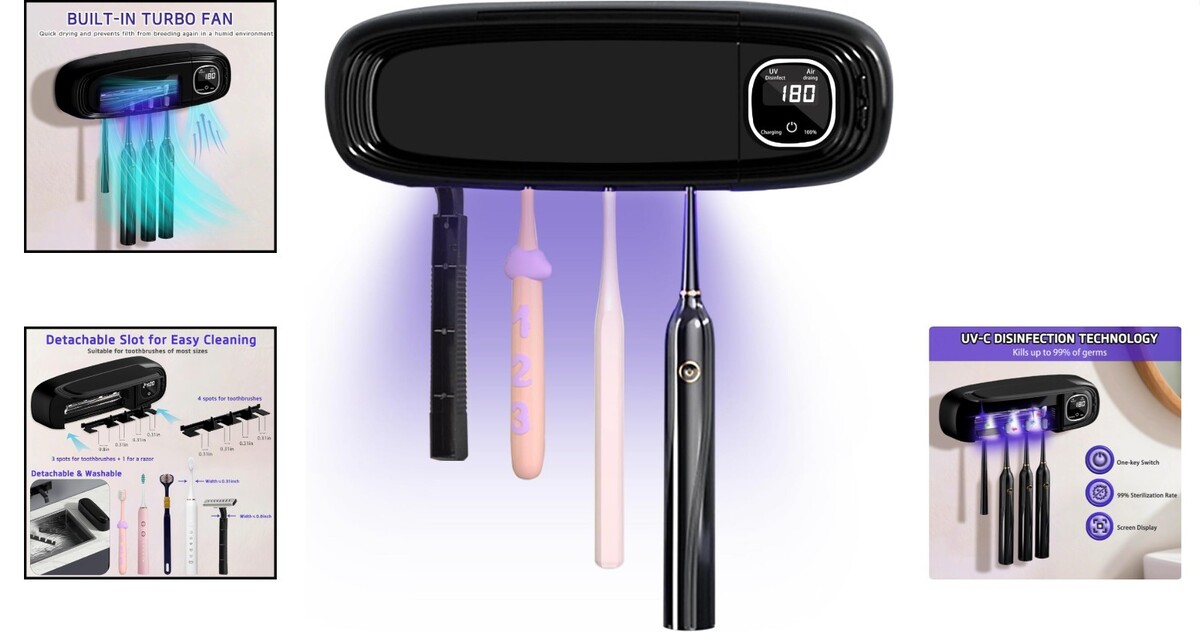 Embrace a healthier lifestyle and flaunt a cleaner bathroom?order your 4-Slot Cordless UV Toothbrush Holder today!