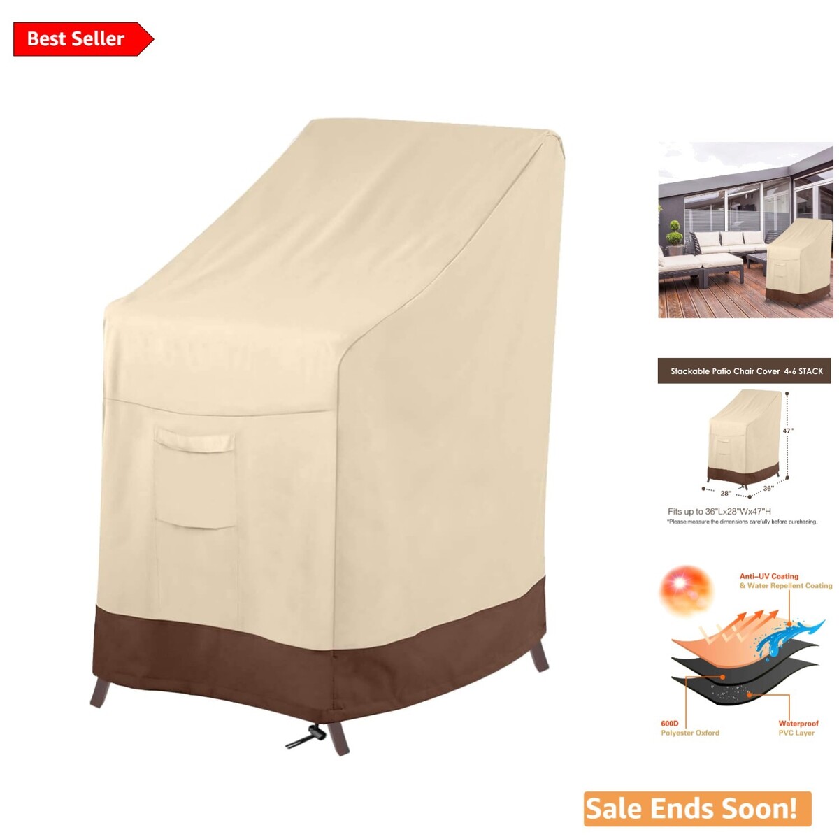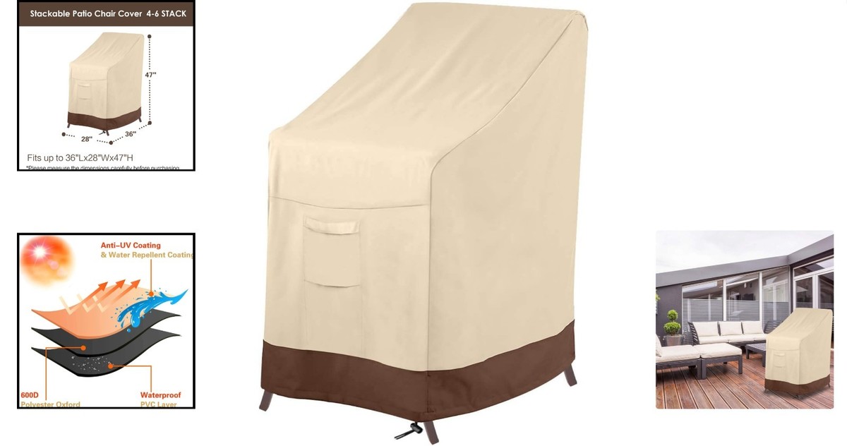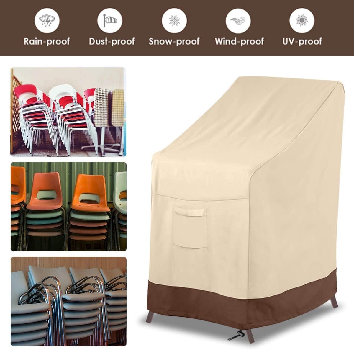 Stackable Chair Cover with Elastic Hem - Protect Outdoors, Beige & Brown