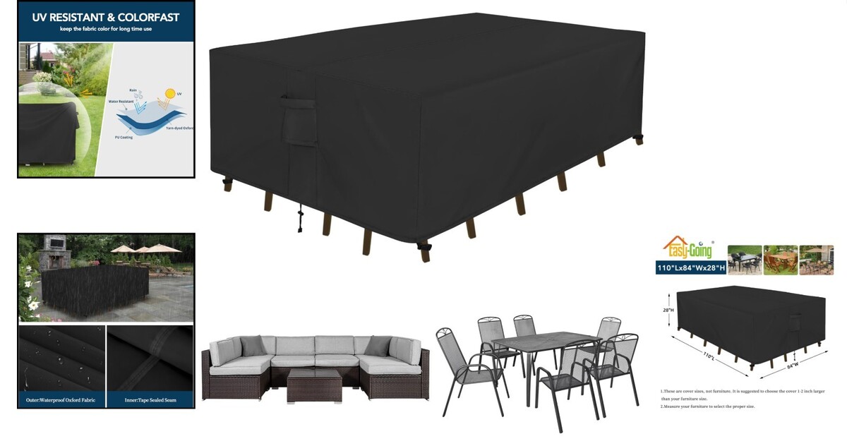 Perfect Fit: Designed to fit outdoor furniture sets measuring up to 110"L x 84"W x 28"H, this cover is ideal for sectional sets and rectangular tables with chairs. Ensure the longevity of your furniture by measuring before purchasing.