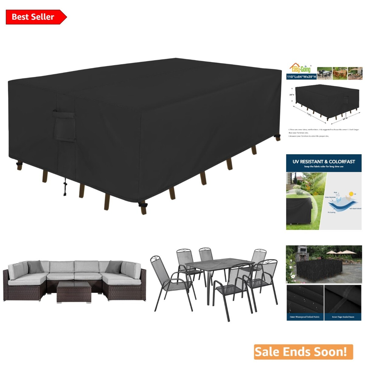 Black Waterproof Outdoor Dining Table & Chair Cover - Fits 110"L x 84"W, Durable