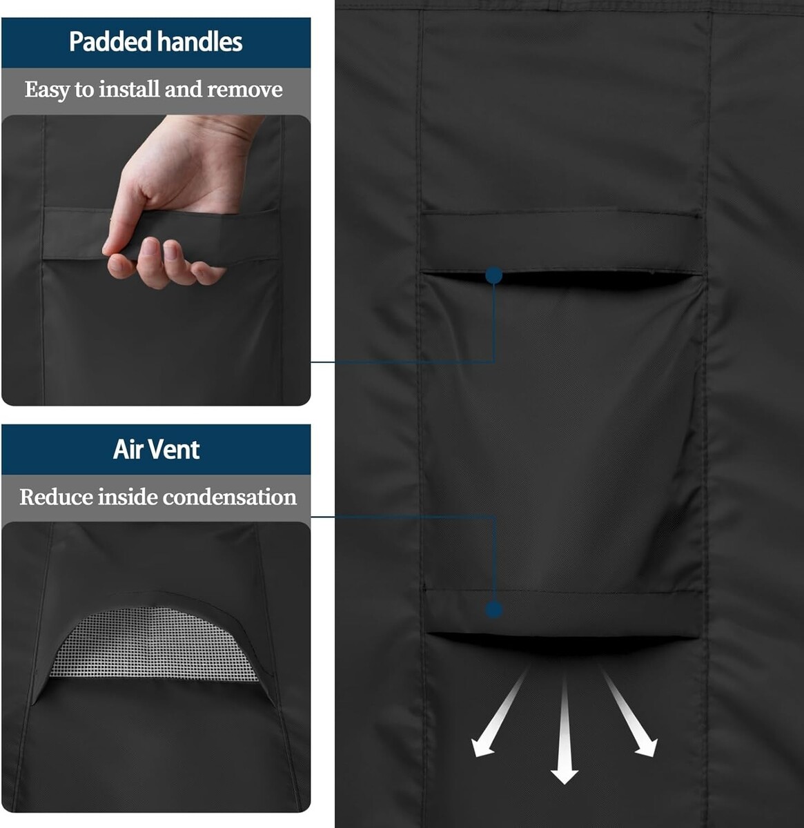 Well-Made Structure: Features air vents to reduce condensation and prevent wind lofting. Plastic buckles and hem cord string ensure a snug, custom fit, particularly during gusty winds and severe weather.