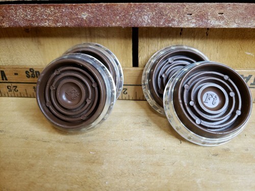 Vintage Furniture Caster Cups Round Plastic Set Of 4 Clear and Brown Spike. Condition is "Used". Shipped with USPS First Class (3 to 5 business days).