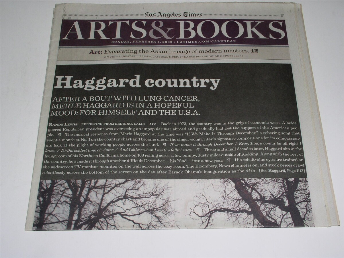 This is the February 1, 2009 issue of "Arts Books" newspaper supplement. Cover story on Merle Haggard. A great item for the fan or collector.