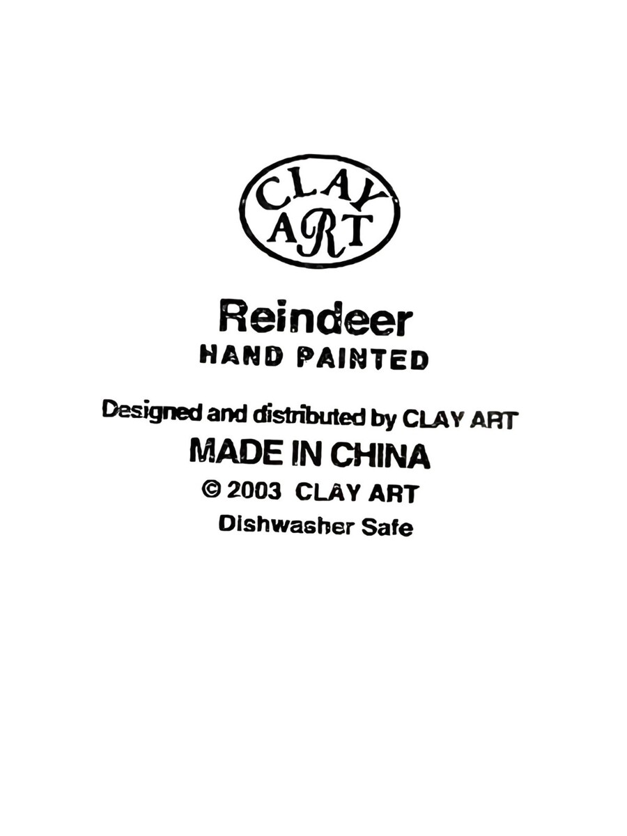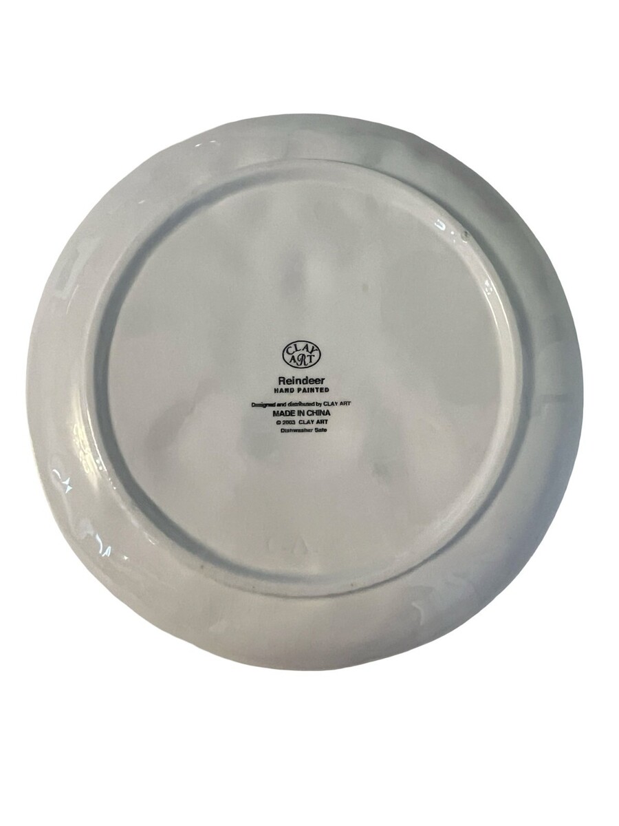 Clay Art Reindeer Plate Christmas Hand Painted 2003 Holiday Dessert Plate 8 Inch