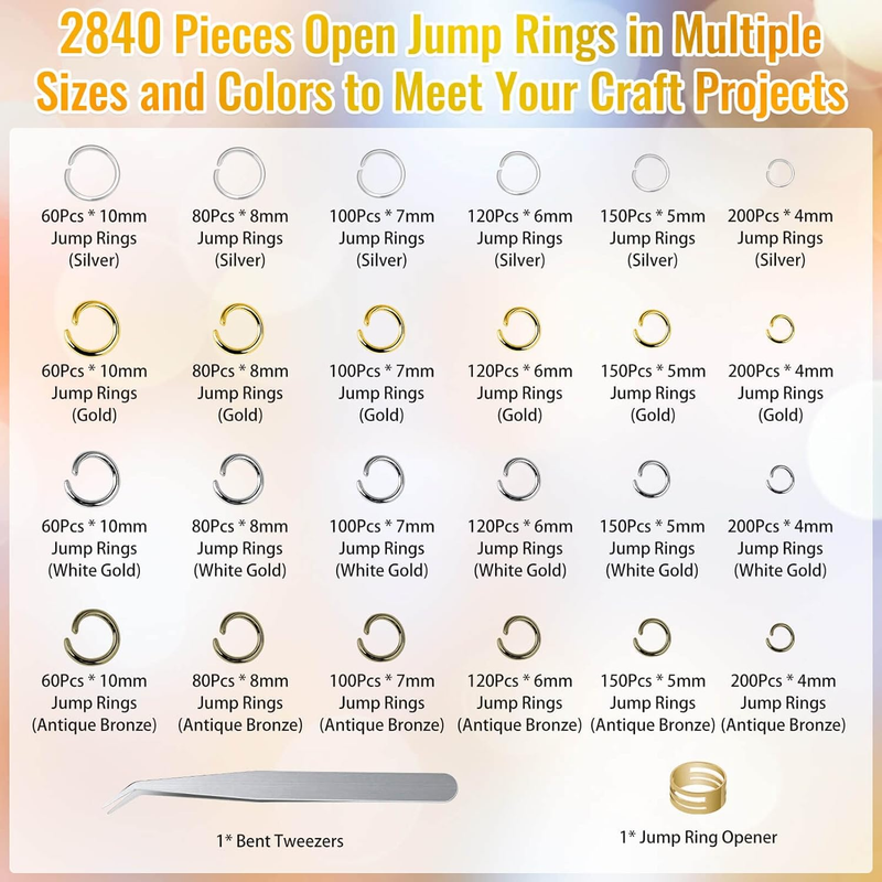 2840 Pieces Jump Rings for Jewelry Making, Open Jump Rings for Jewelry Making Supplies