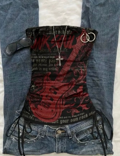 Bring back bold retro vibes with this Y2K-inspired drawstring front cut vest ?? Designed for a flattering slim fit, this stylish top blends casual comfort with a trendy streetwear edge.
