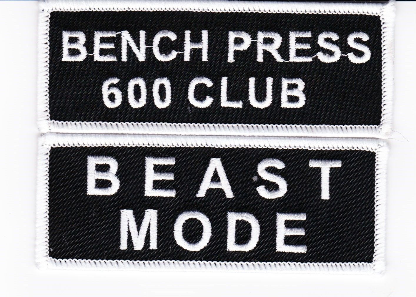 BEAST MODE BENCH PRESS 600 CLUB SEW/IRON ON PATCH EMBROIDERED WEIGHTLIFTING GYM