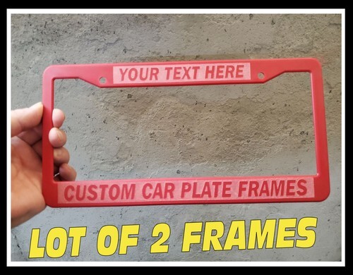 2 CUSTOM PERSONALIZED BLACK WITH RED LETTERS customized License Plate Frame