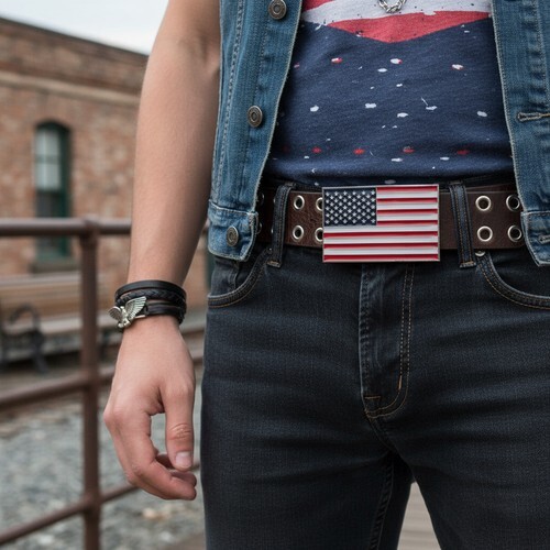 Union Jack British Flag Rhinestone-Look Military Style Closure Belt Buckle for 1" Wide Belting (M211.20)