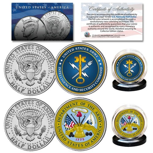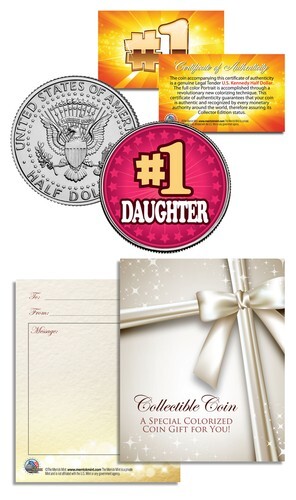 This is a great gift for your Dad to proudly display and makes a great Fathers Day gift! This 2-coin set includes a beautifully colorized ?BEST DAD? JFK Kennedy Half Dollar and a beautifully colorized official ARMY Logo JFK Kennedy Half Dollar. Each coin comes in a premium coin capsule with a coin display stand. Included is a Certificate of Authenticity to guarantee that your coins are authentic and recognized by every monetary authority around the world, assuring its Collector Edition status. These Genuine Legal Tender United States coins have been colorized using a unique painstaking multi-color authentic process by the Merrick Mint. Colorizing coins involves the unique application of special inks directly to the surface of a coin that achieves a level of detail, color saturation, and durability that is #1 in the coin industry. The result is an everlasting colorized coin collectible of ultra-high quality. Celebrate Fathers day with these Unique Coins. Make Dad Proud!