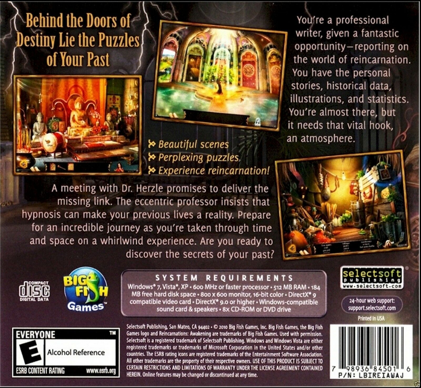 BIG FISH GAMES: REINCARNATIONS: AWAKENING. BRAND NEW. SHIPS FAST and SHIPS FREE!