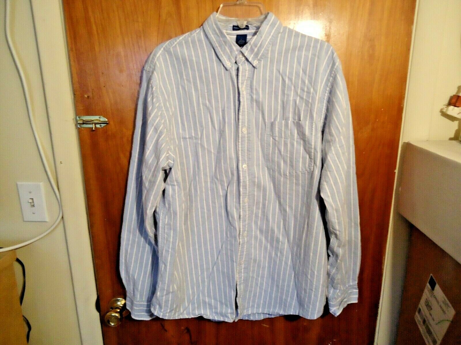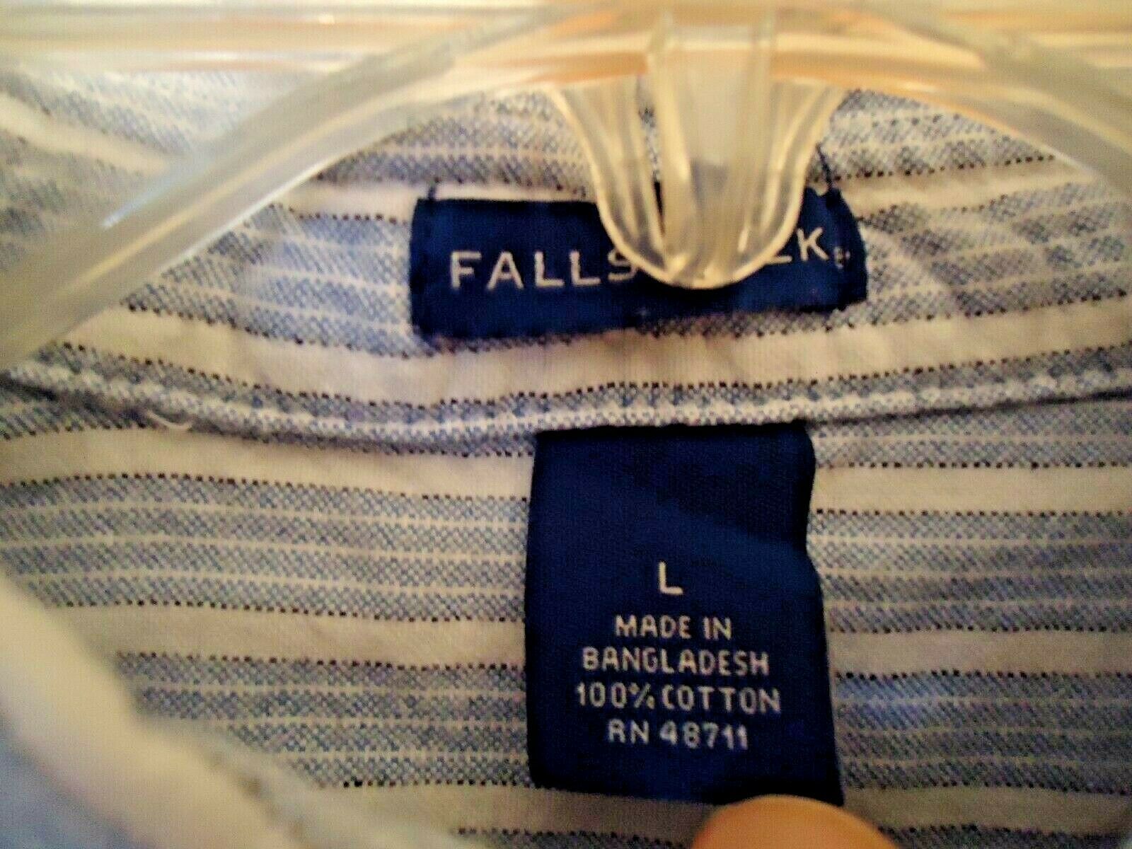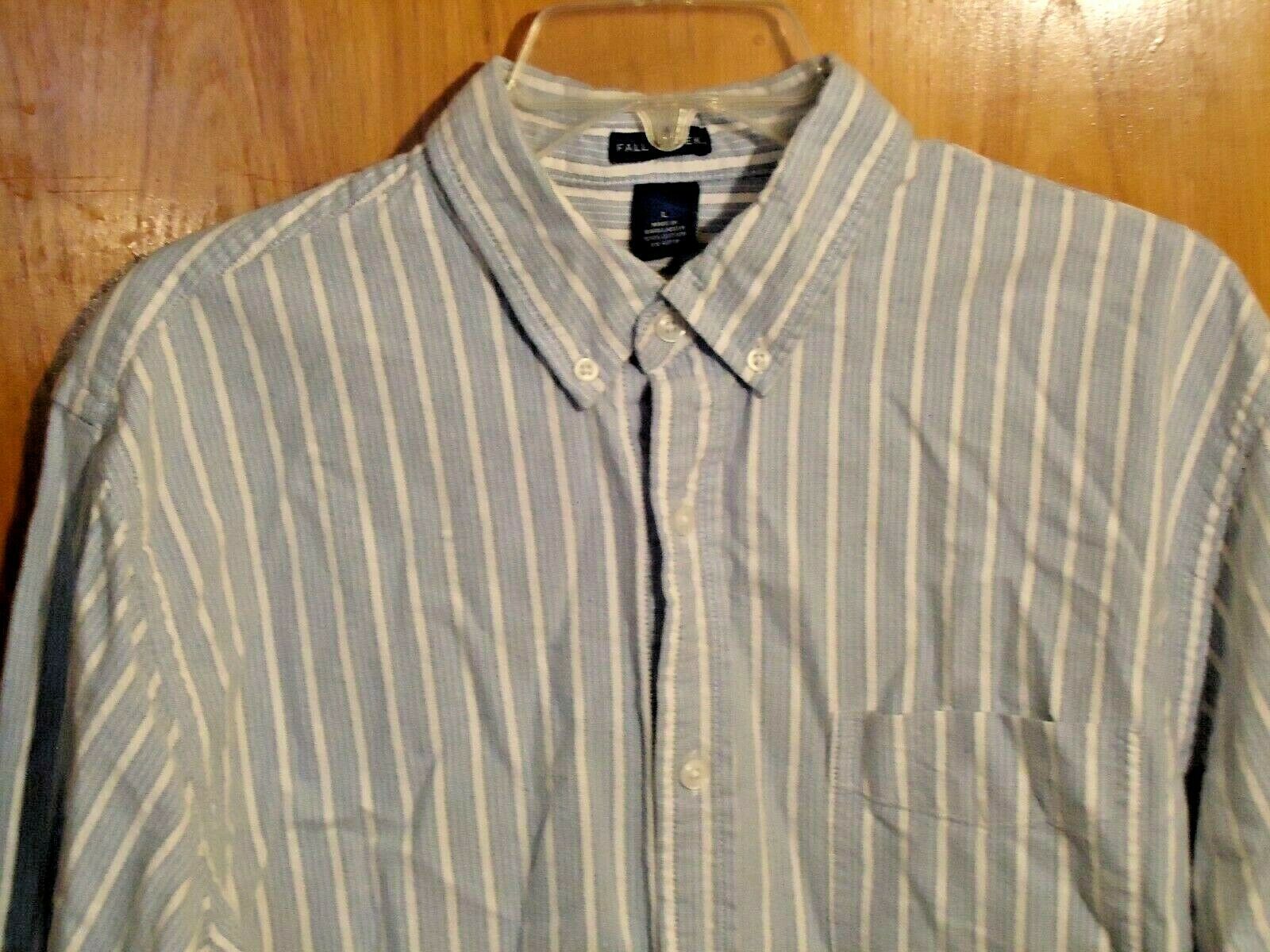 Here is a Mens Falls Creek Size L Blue White Long Sleeve Button Down Pin Stripe Shirt " BEAUTIFUL SHIRT ".If you have any concerns or questions about this item(s) please ask before bidding / purchasing this item(s).Thank You.-(CL13)