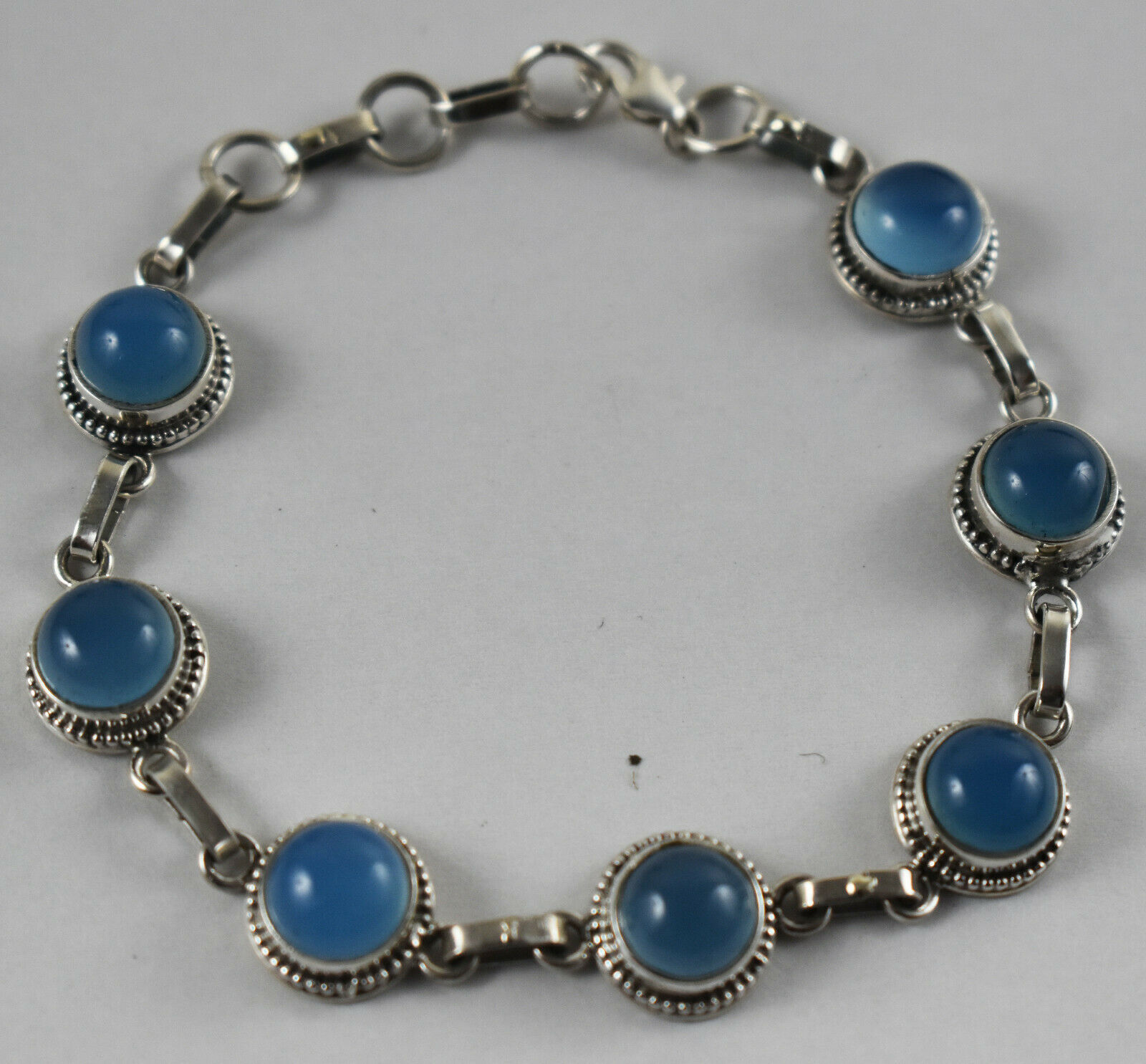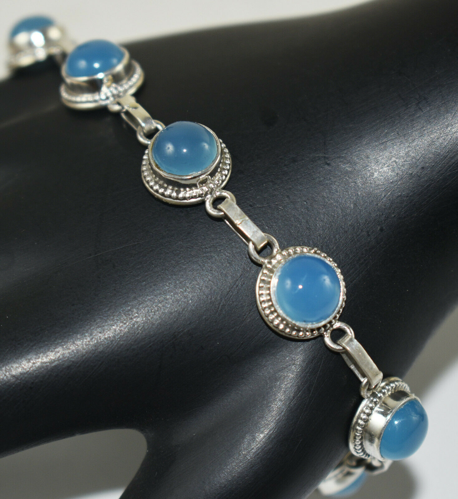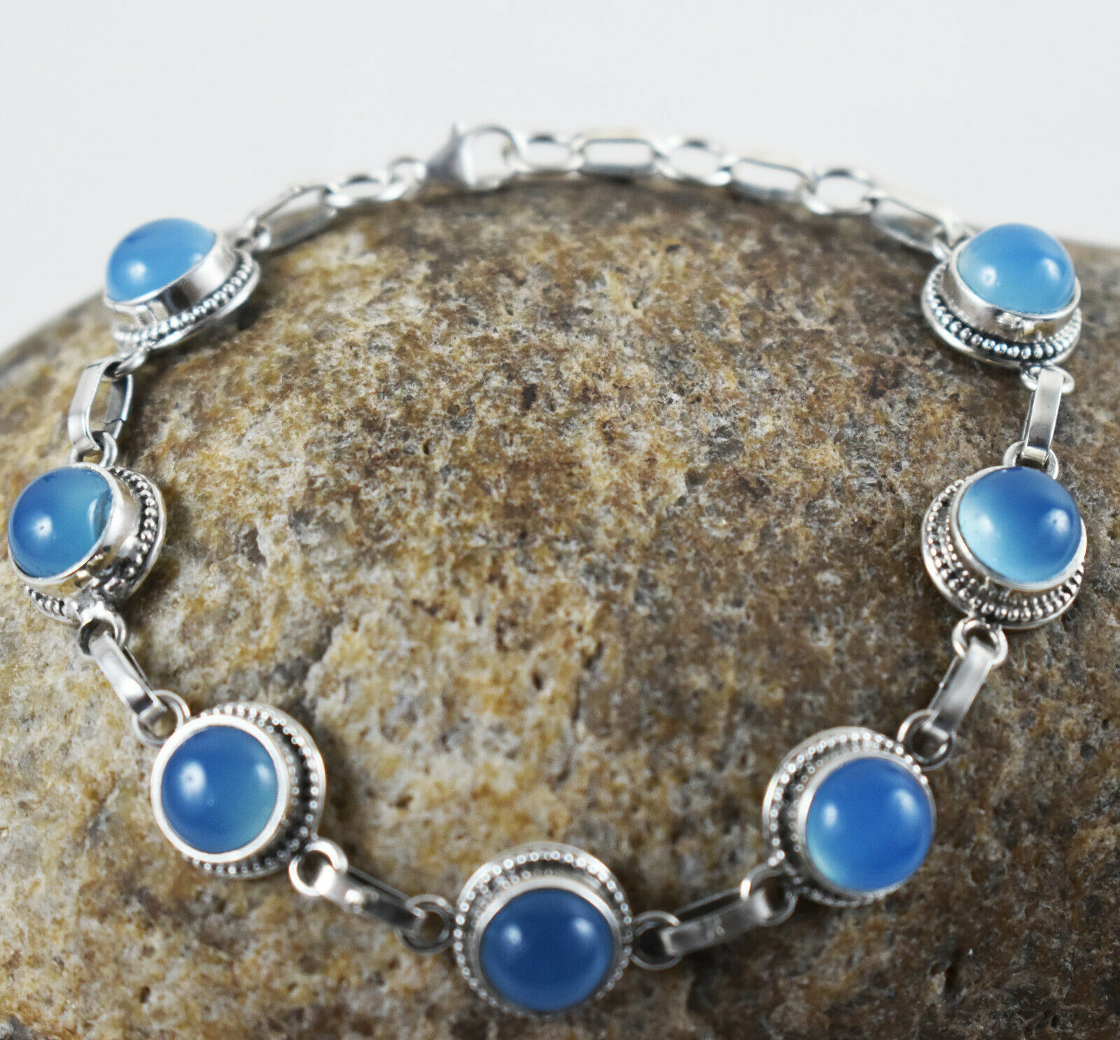 Sterling Silver Natural Chalcedony Gemstone Handmade Women's Bracelet Party Wear