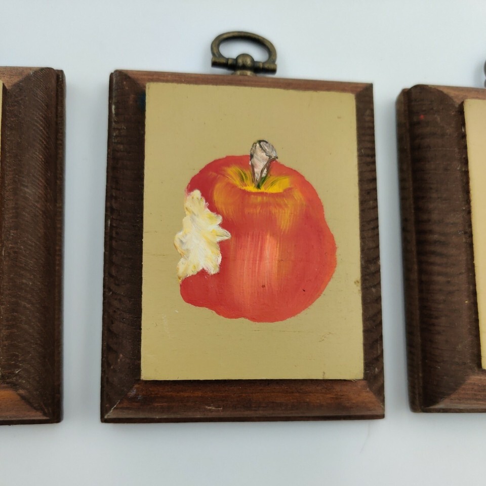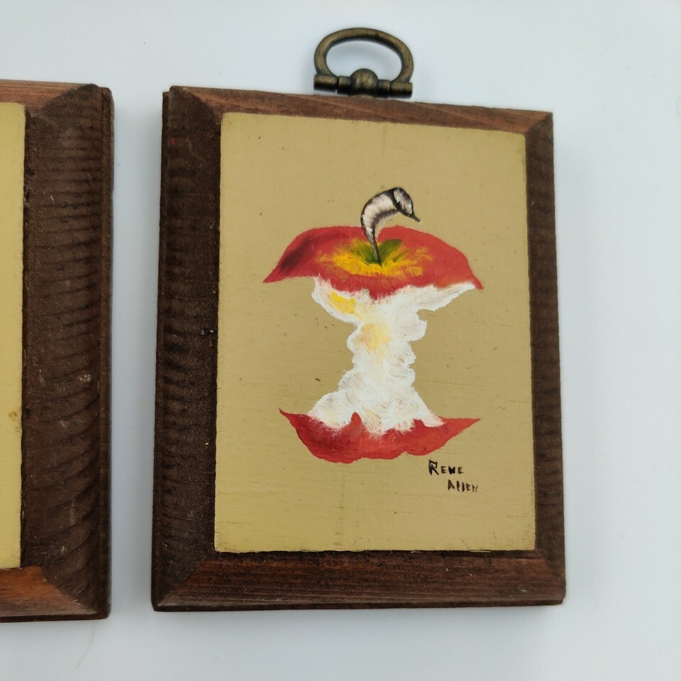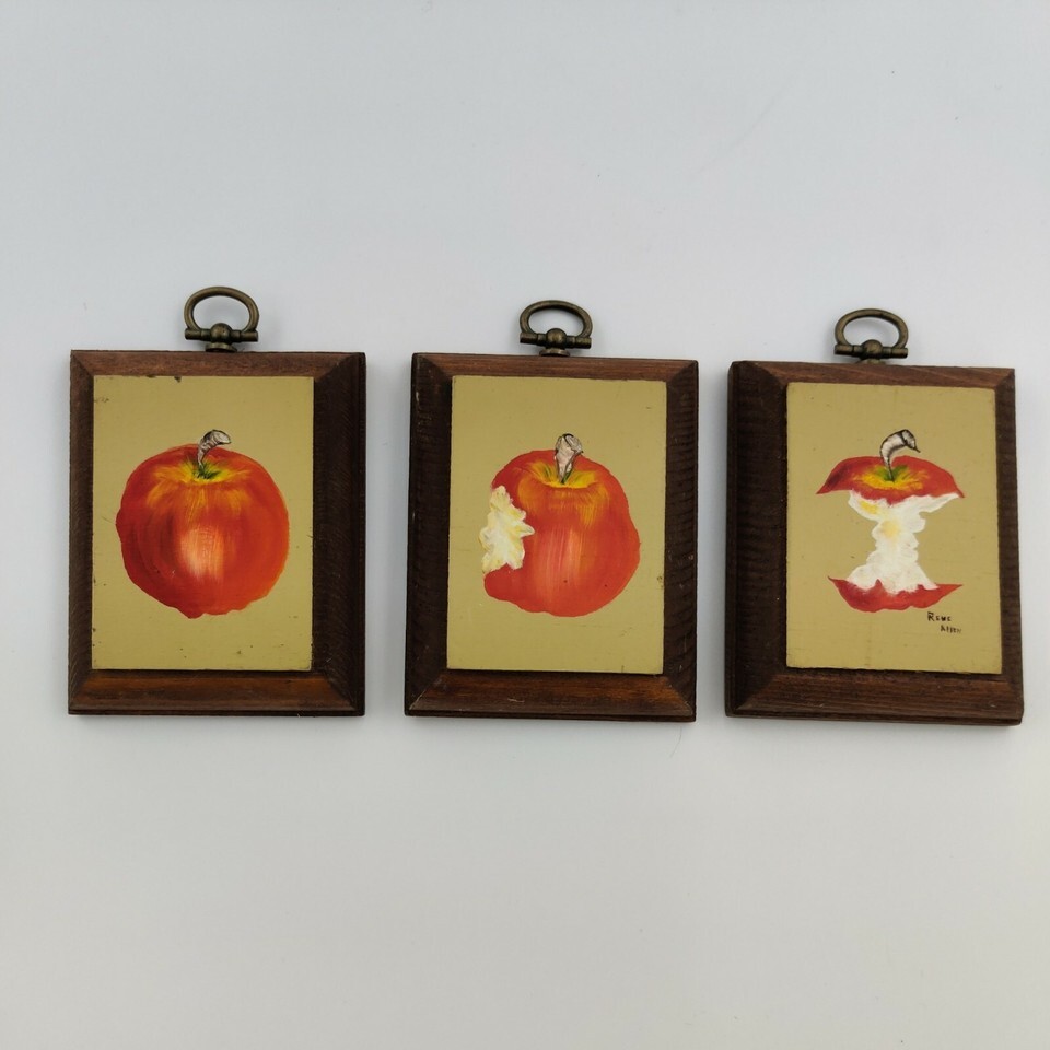 (3) 3"X3.5" Small Hanging Wooden Art - Apple Bites Kitchen Artwork By Rene Allen. Combined Shipping (for USA Customers Only)