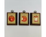 - (3) 3"X3.5" Small Hanging Wooden Art - Apple Bites Kitchen Artwork By Rene Allen