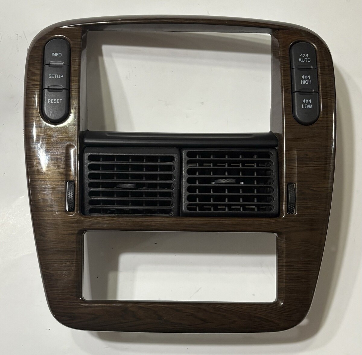 Used ? good overall condition with normal wear marks from age. Wood-grain finish still looks clean. All mounting tabs intact. (Includes both air vents and both side switch modules - Info/Setup/Reset 4x4 Auto/High/Low)