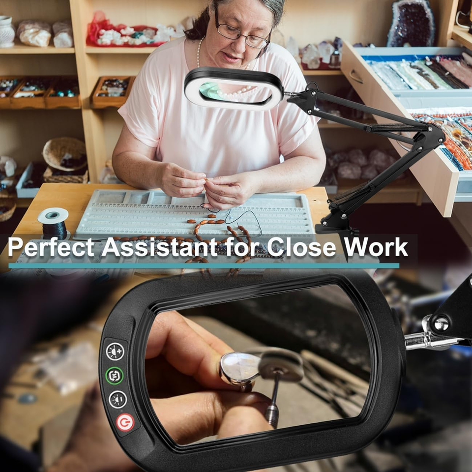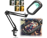 0X Rectangle Magnifying Glass Lamp • 5 Color Modes, Dimmable LED Clamp Swing Arm