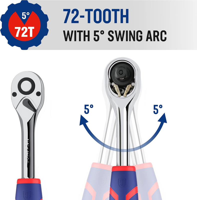 The finely tuned 72-tooth gear requires only a 5-degree swing arc, delivering maximum torque even in tight spaces. Perfect for accessing hard-to-reach bolts, this feature enhances the tool?s versatility.