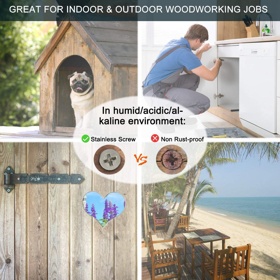 VERSATILE APPLICATIONS: Thanks to their anti-corrosive and rust-resistant properties, these stainless steel screws are suitable for a wide range of indoor and outdoor woodworking tasks, making them an essential addition to your toolkit for hardware and furniture installations.