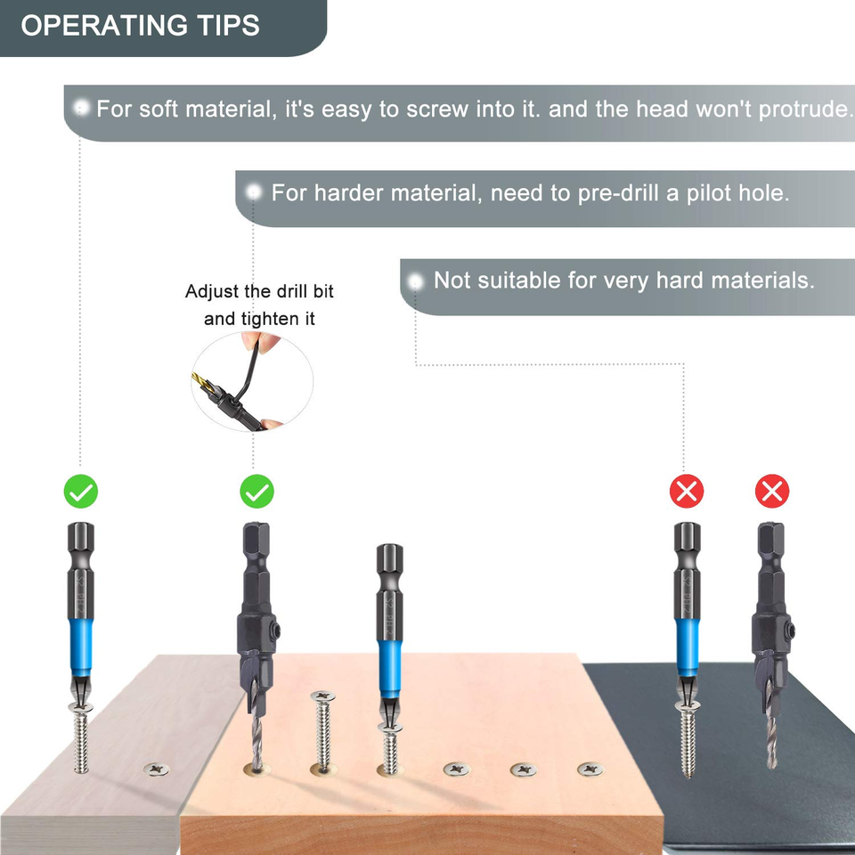 COUNTERSINK DRILL BIT INCLUDED: Ideal for situations lacking pre-drilled counterbores or when working with denser wood, ensuring the screw head remains flush after installation.