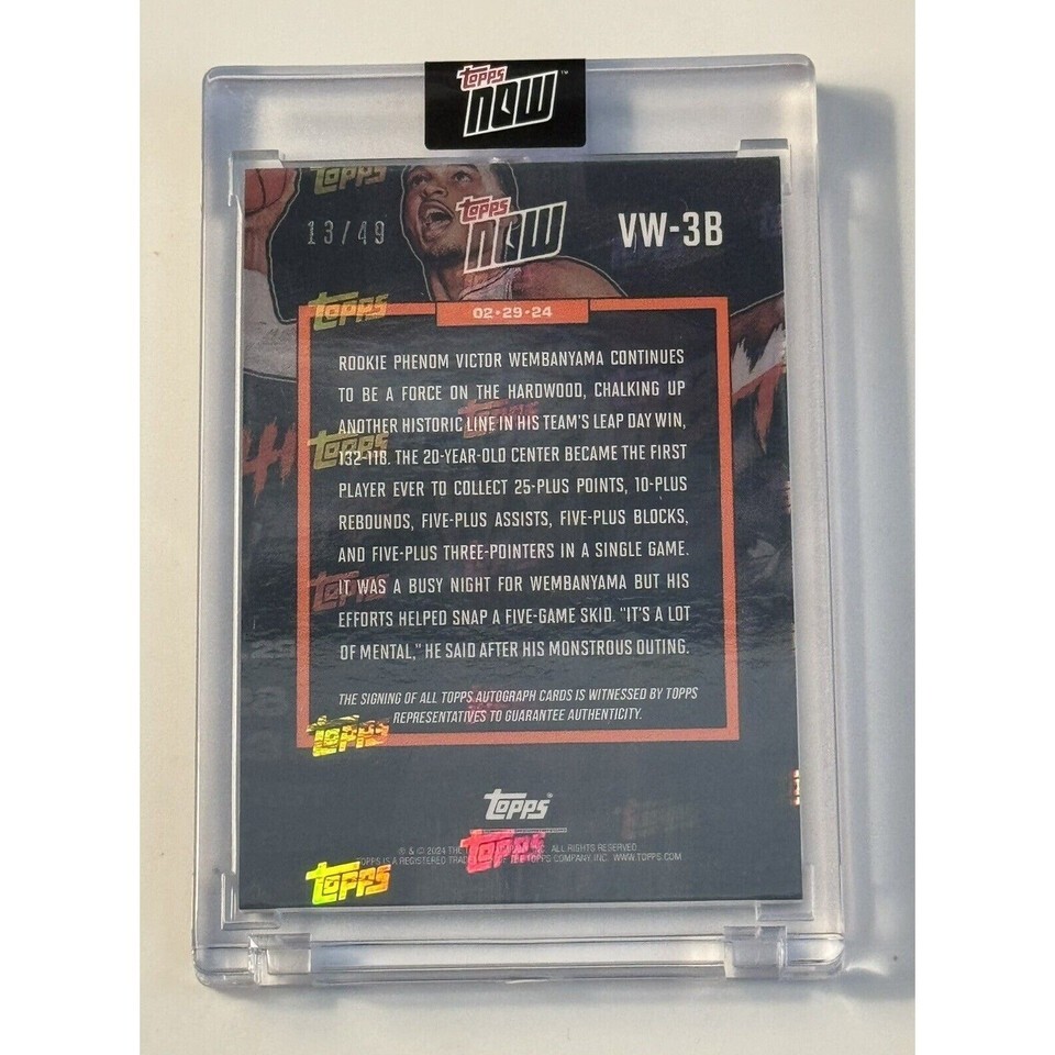 13/49* 2024 Topps Now Victor Wembanyama RC* AUTO History For Wemby! VW-3B - PSA 9