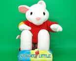 Stuart Little is wearing his clean gold shirt, tan pants, red sweater, red and white shoes. Stuart Little himself is clean white plush, black eyes, pink inside of ears, nose and mouth, red and white shoes and measures approx. 14 inches long out of his box. Body tag reads, 1999 Columbia Pictures.