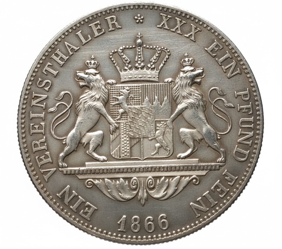 Descubre esta cautivadora restriccion de medalla de arte estilo Thaler bavaro de Luis II de 1866, un excelente artículo de coleccion para entusiastas de la numismatica. Con el llamativo perfil del rey Luis II de Baviera, famoso por sus opulentos castillos y patrocinio cultural, esta pieza historica evoca una epoca rica. El anverso muestra la semejanza del monarca con la inscripcion "LUDWIG II KONIG V. BAYERN" y la marca del grabador "J. RIES". El reverso muestra un majestuoso escudo de armas bavaro coronado, flanqueado por dos leones reales, junto con el año 1866 y un texto que hace referencia al estandar de Vereinsthaler, "EIN VERINSTHALER XXX EIN PFUND FINE". Esta restriccion meticulosamente elaborada es un tributo excepcional a un período significativo en la historia europea, por lo que es una pieza conmemorativa única. Sirve como una fascinante ficha historica y una hermosa pieza de arte, ideal para cualquier exhibicion de artículos de coleccionista. Su acabado resistente mejora los detalles intrincados, ofreciendo una adicion deseable a cualquier coleccion numismatica seria. Un verdadero artículo de coleccionista y medalla historica.