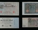1910-1929 Germany 4-Notes Set // German Empire 1000 Weimar 20, 100 500 Mark