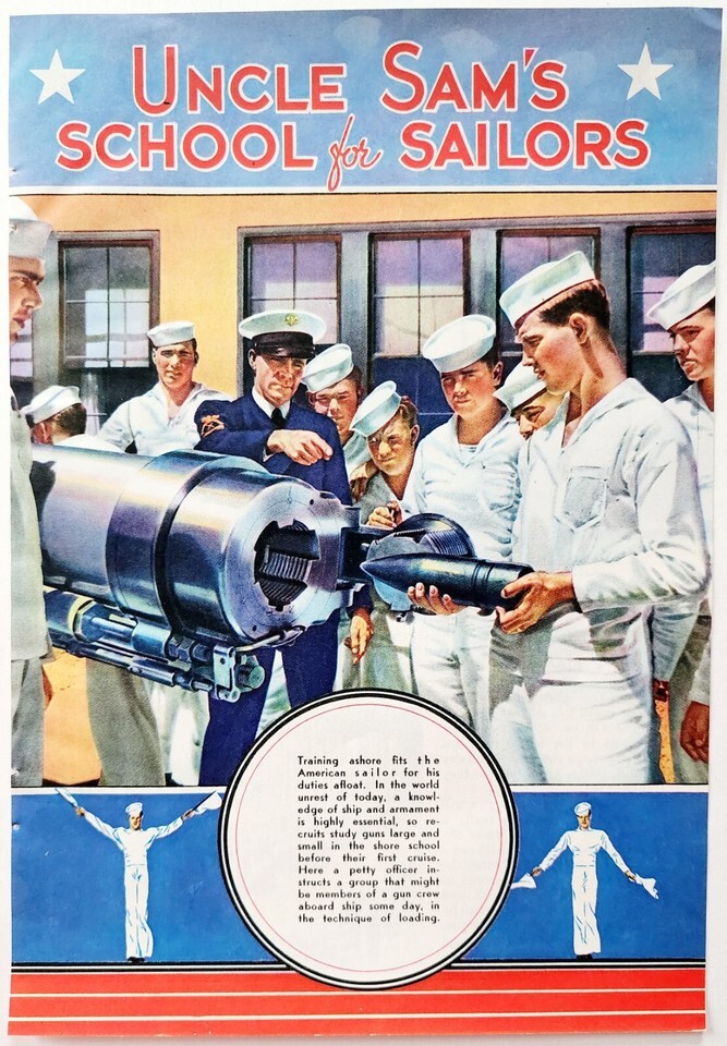 1941 Uncle Sam's School For Sailors Advertisement WW2 Lithograph Navy DWF23